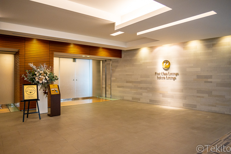 保安検査場を抜けると、ほぼ正面にサクララウンジとファーストクラスラウンジ共通のエントランスがあります。