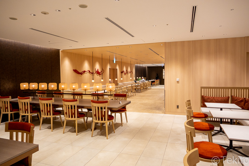 夕方以降のピーク時間になってくると、ファーストクラスラウンジも混雑してきます。特にダイニングエリアは間隔を開けて座ることができず、隣席は埋まってしまいました。