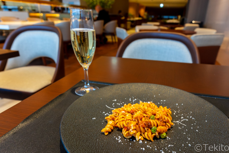 時間が早すぎるので、「鮨 鶴亭」はオープンしていません。そのため「JAL’s Table」から攻めます。パスタプレートをオーダー。