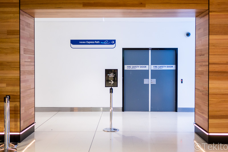出国審査優先レーンはガラガラ。待ち時間ゼロで出国審査と保安検査は完了です。