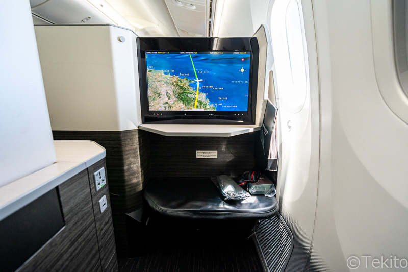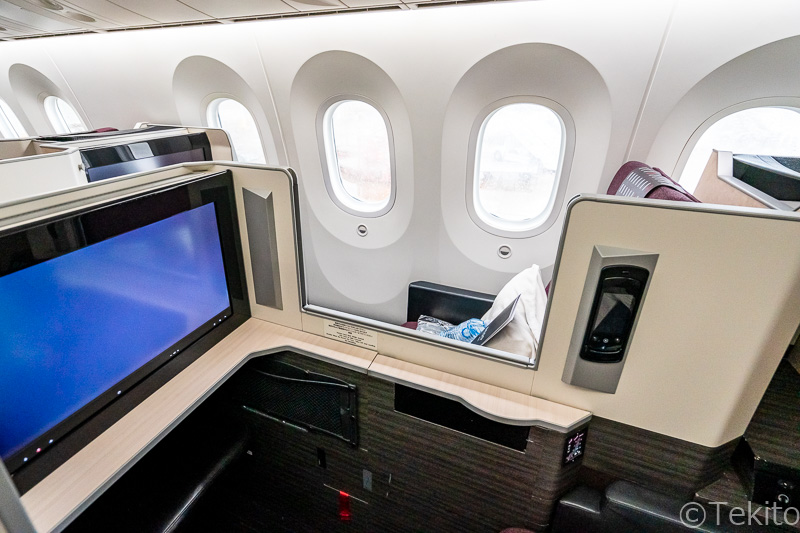 ビジネスクラスはJAL SKY SUITE。窓側のシートはほぼ個室でファーストクラス感あり。JALビジネスクラスに搭乗するならおススメしたいシートです。