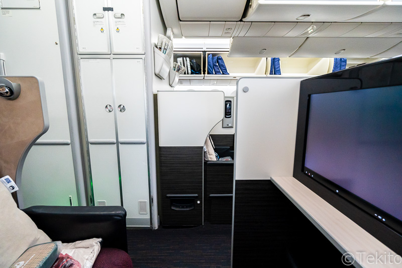窓側はファーストクラス感を味わえるJAL SKY SUITEですが、通路側のプライベート感はそれ程でも無さそう。