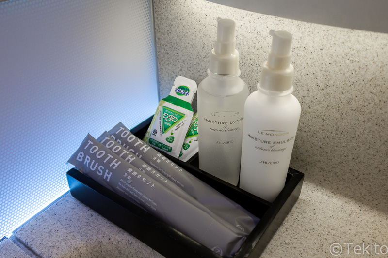 エコノミークラスでも歯ブラシは置いてありますが、エコノミークラスだと機内食の直後には売り切れるケースが多い。