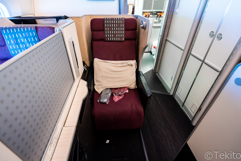 JAL SKY SUITEはファーストクラスのような個室タイプ(窓側のみ)であり、とても素晴らしいです。