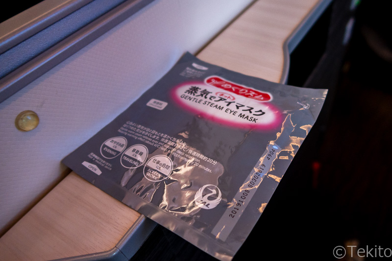 着陸前にCAさんからホッとアイマスクを頂きました。ビジネスクラスでは全員に配布されているようです。