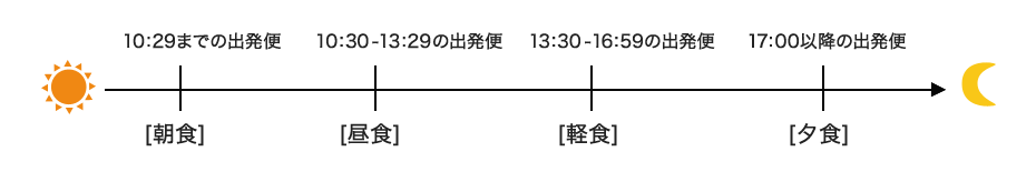 食事のメニューは出発時刻によって入れ替わります。今回は定刻16:35発のフライトなのでメニューは軽食です。