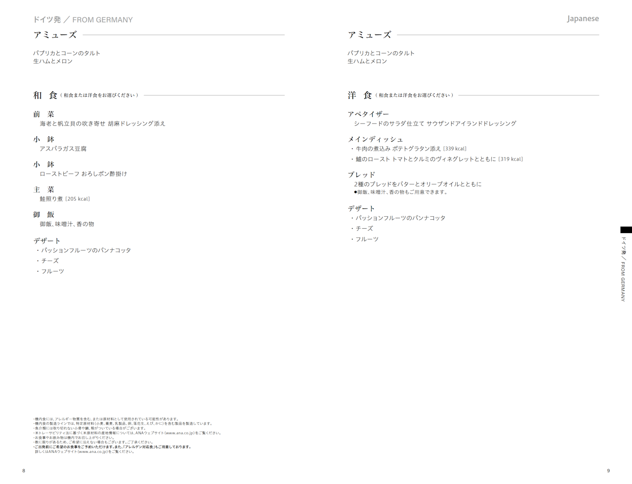 機内食メニューはネットで公開されています。この後に出てくる機内食メニューはネットからの転載です。