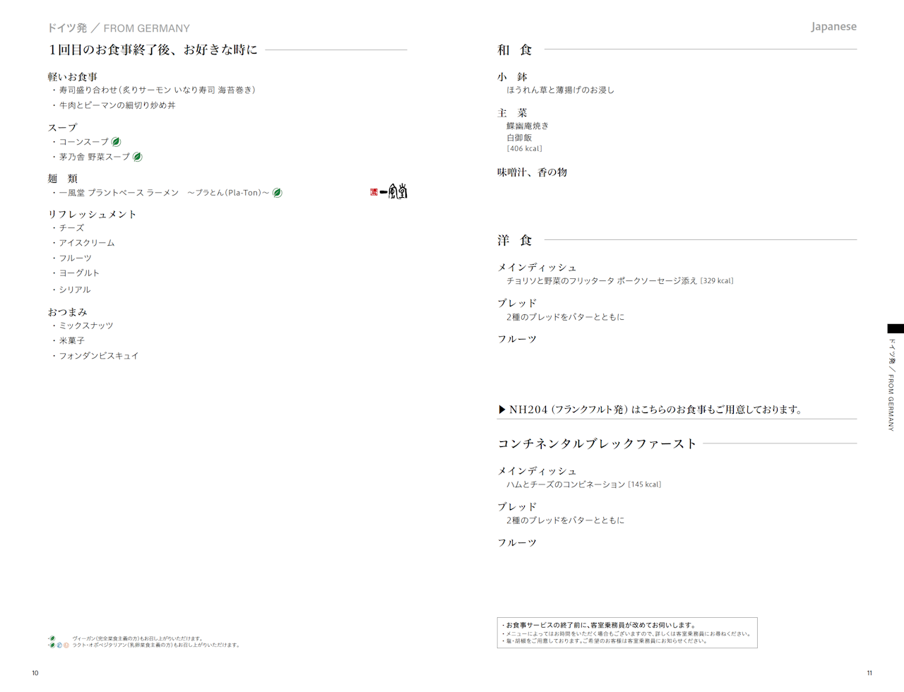 - 離陸後の食事