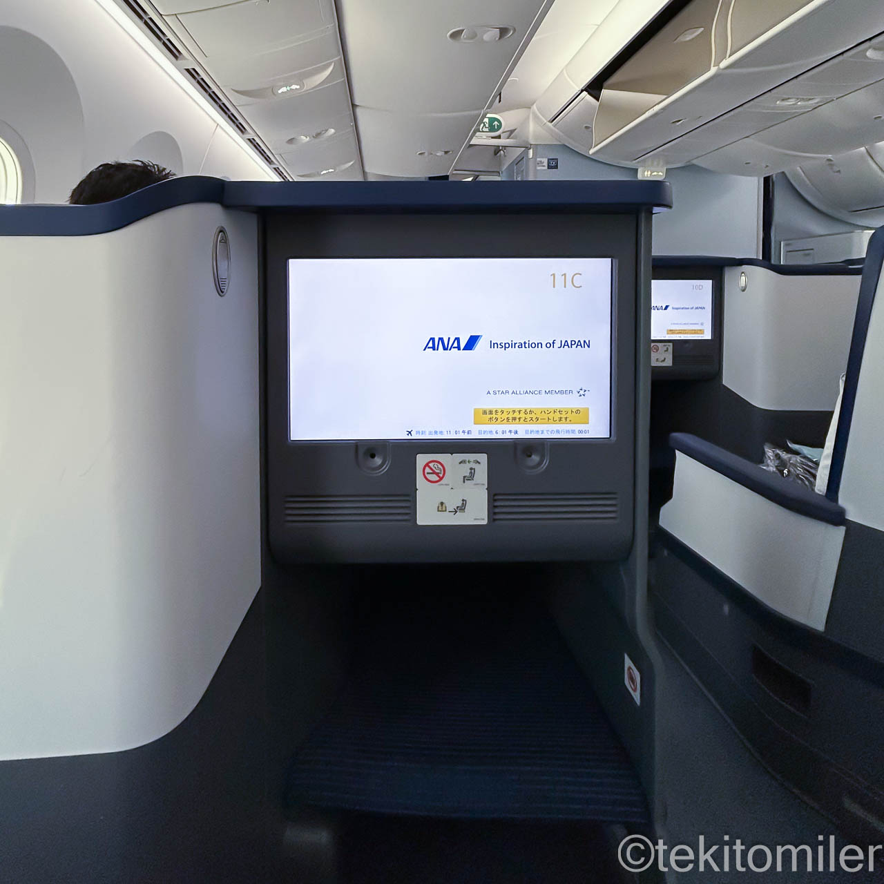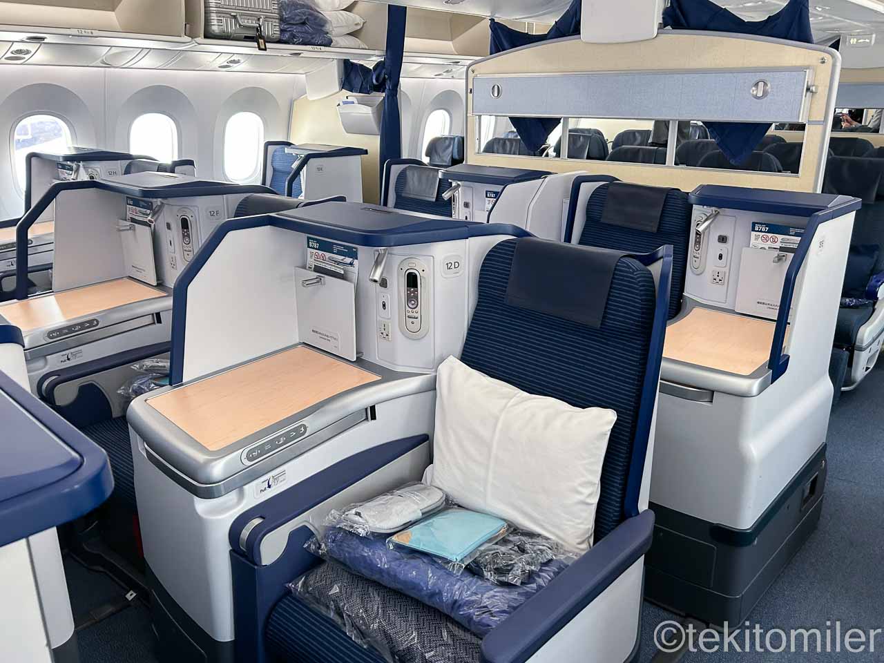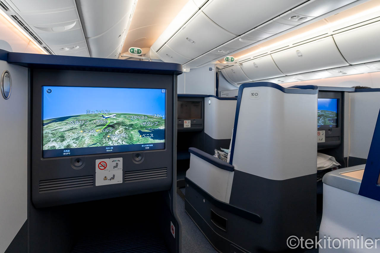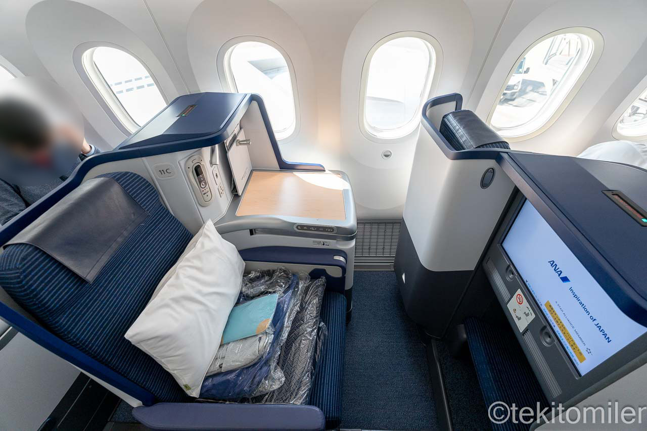 本日の機材はB787-9(215席仕様)で、ビジネスクラスはANAビジネススタッガードです。
