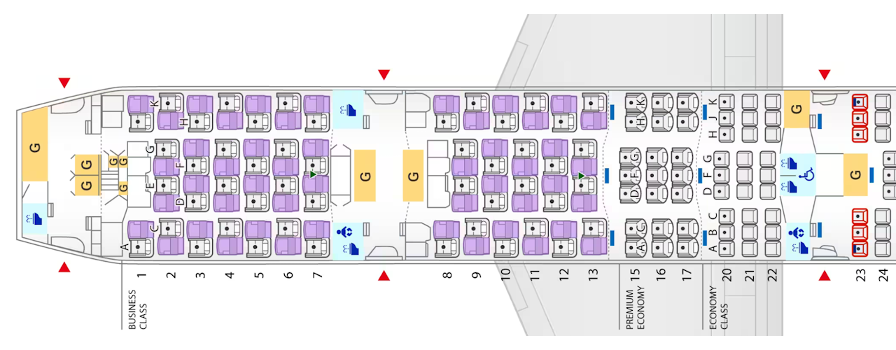 11Cはビジネスクラスの後方、Bコンパートメントです。エコノミークラスの乗客も、搭乗時は通路を通ります。