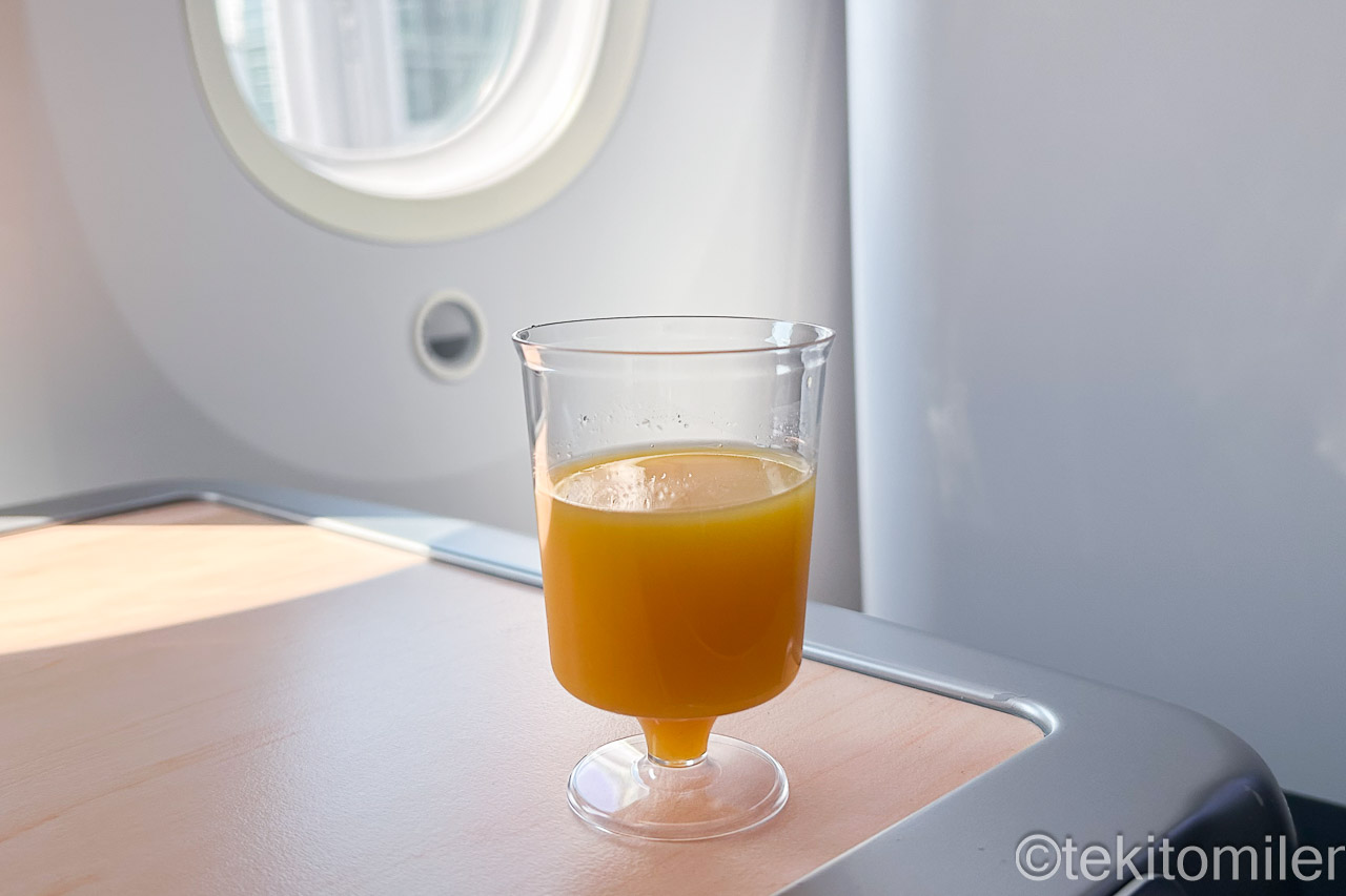 ミュンヘンでビールを浴びてしまったので、ウェルカムドリンクはオレンジジュースをチョイス。