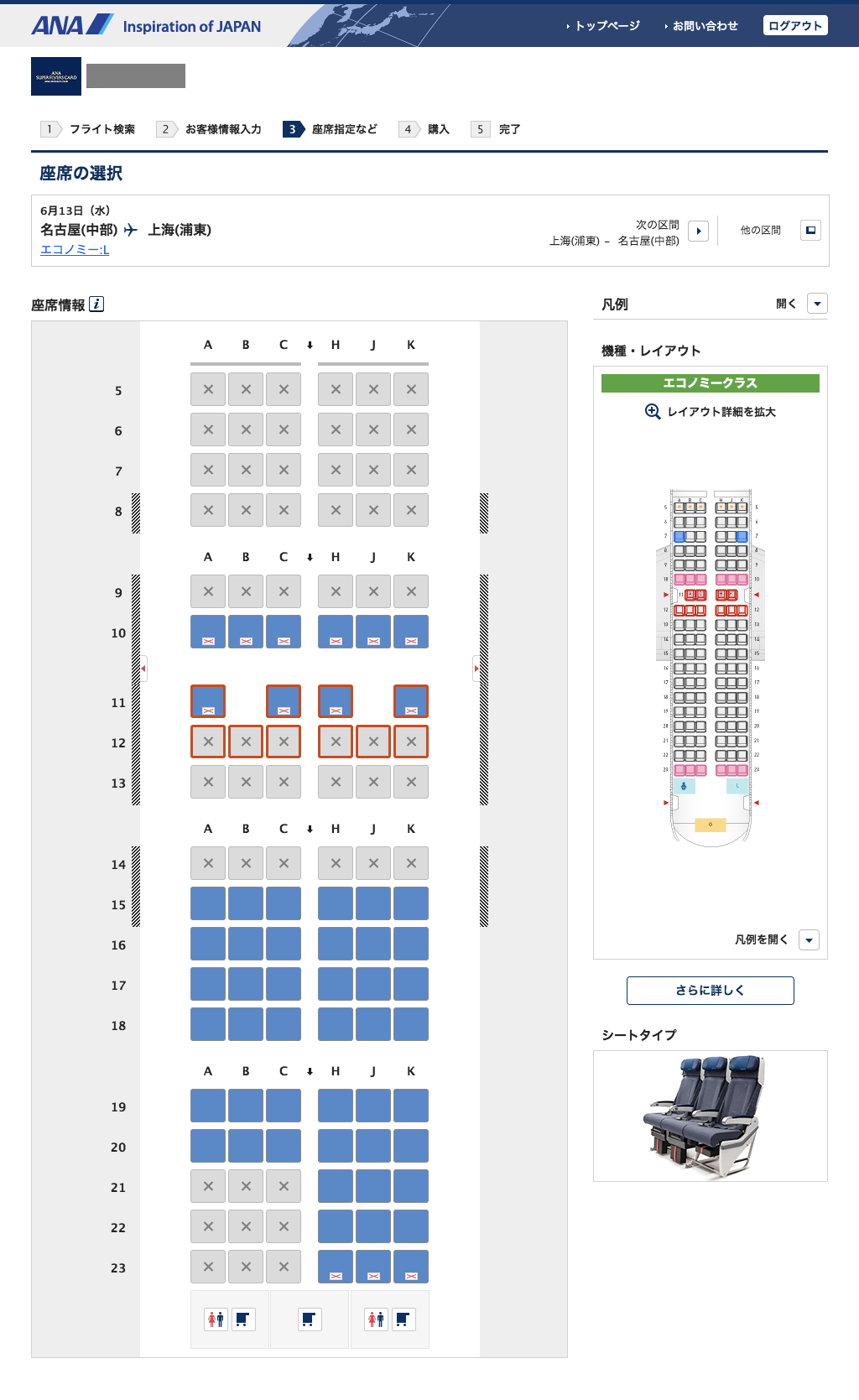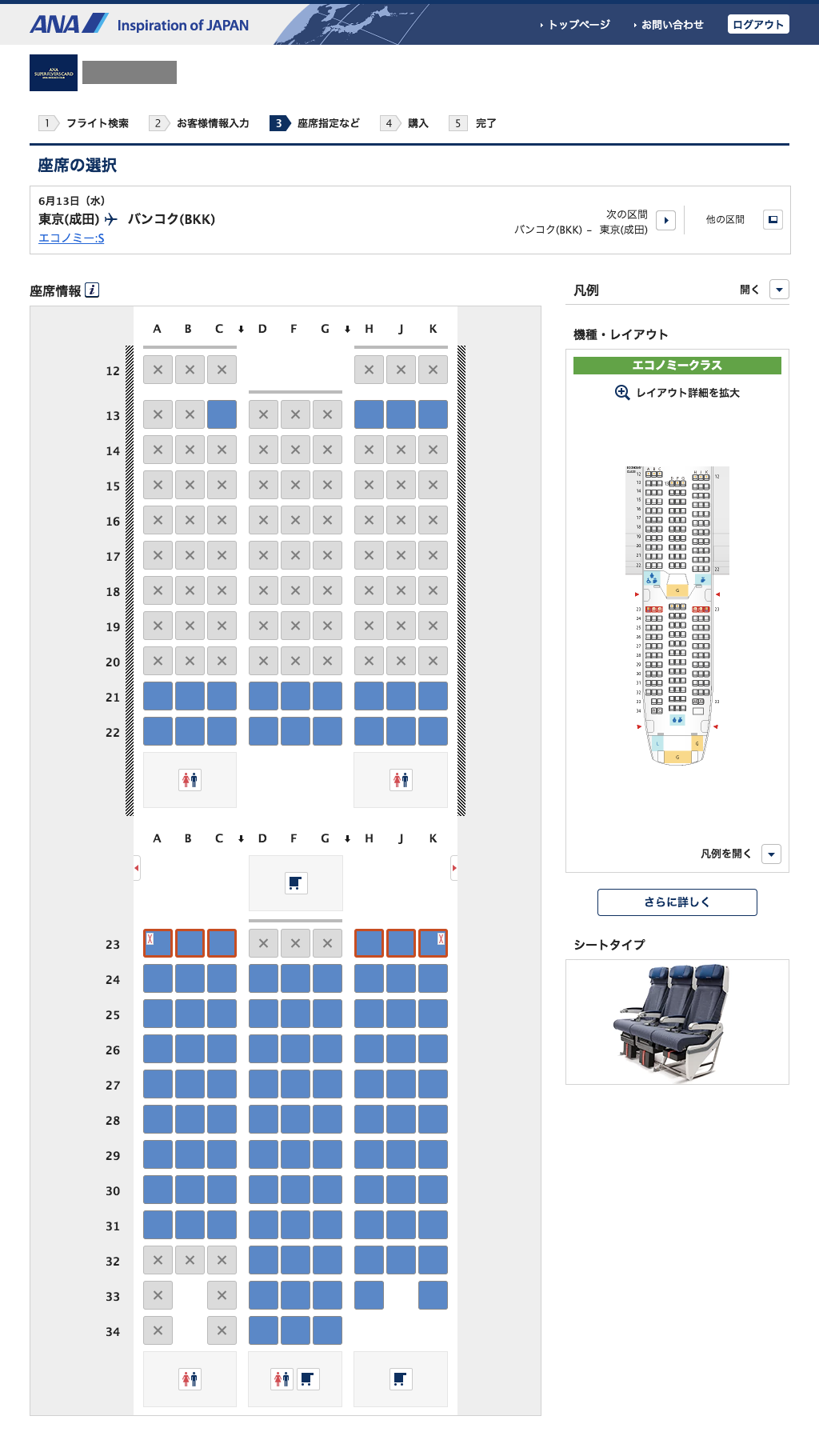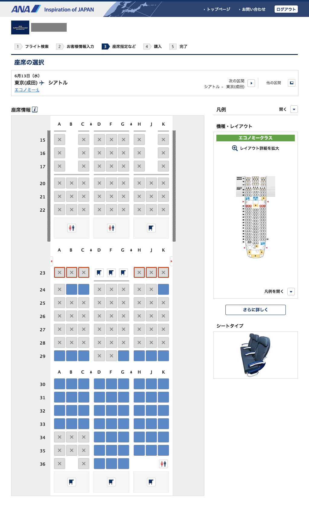 分かった事2:上位の予約クラスだと指定可能な座席は広がるが、非常口席の指定には影響しない。