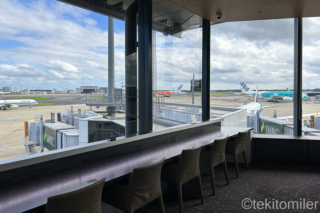 ANAスイートラウンジの1番奥のカウンター席。見晴らしが素晴らしい。