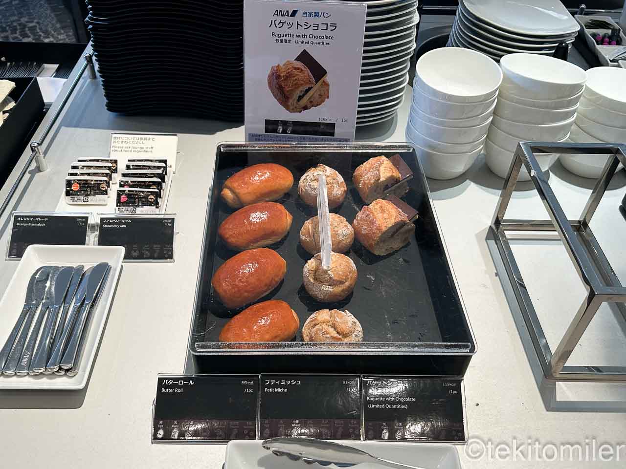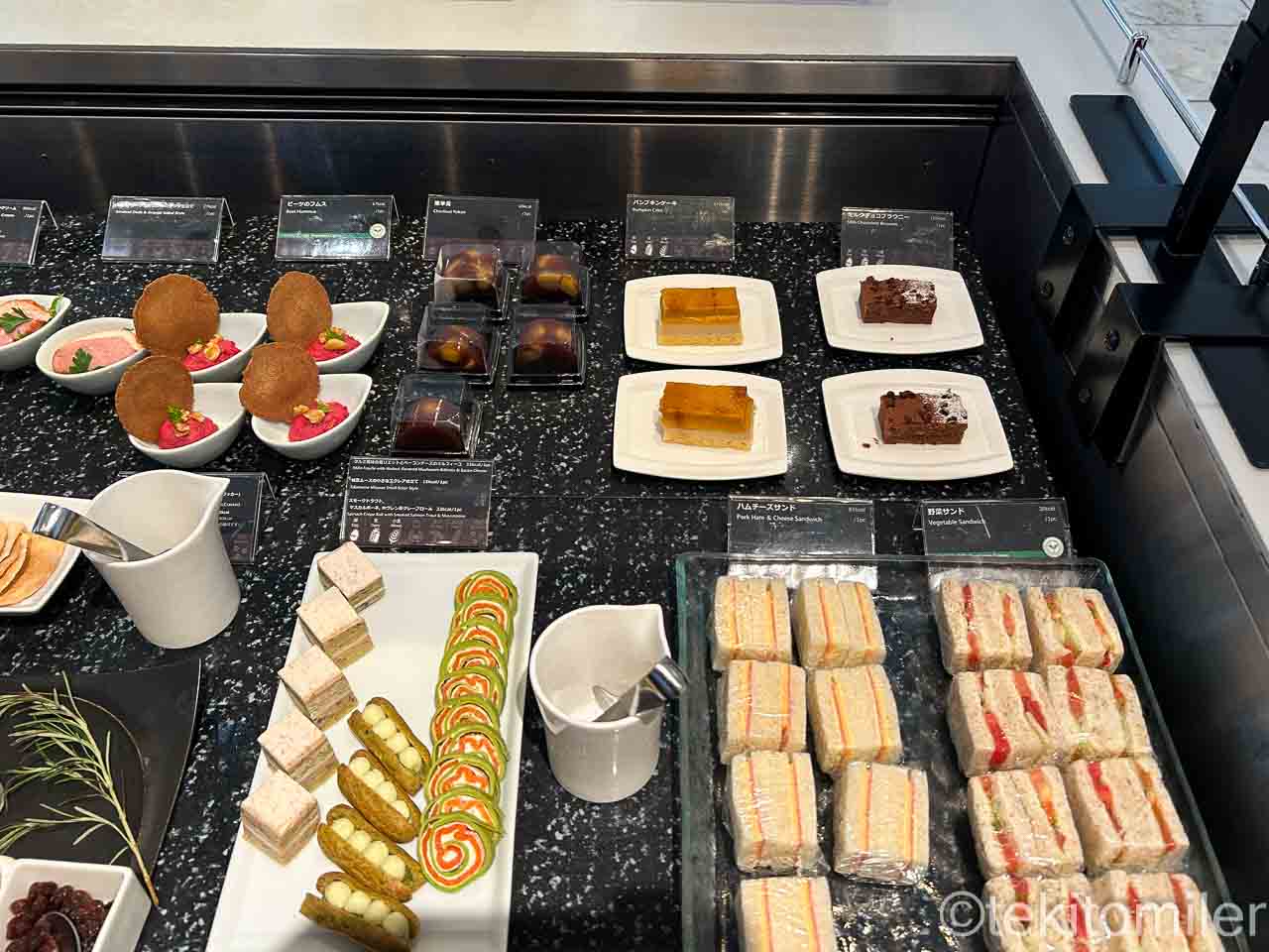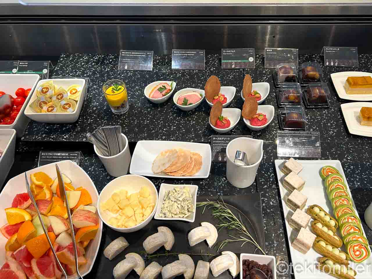 サンドイッチ、パン、サラダ、スイーツなどは、ビュッフェカウンターから選びます。