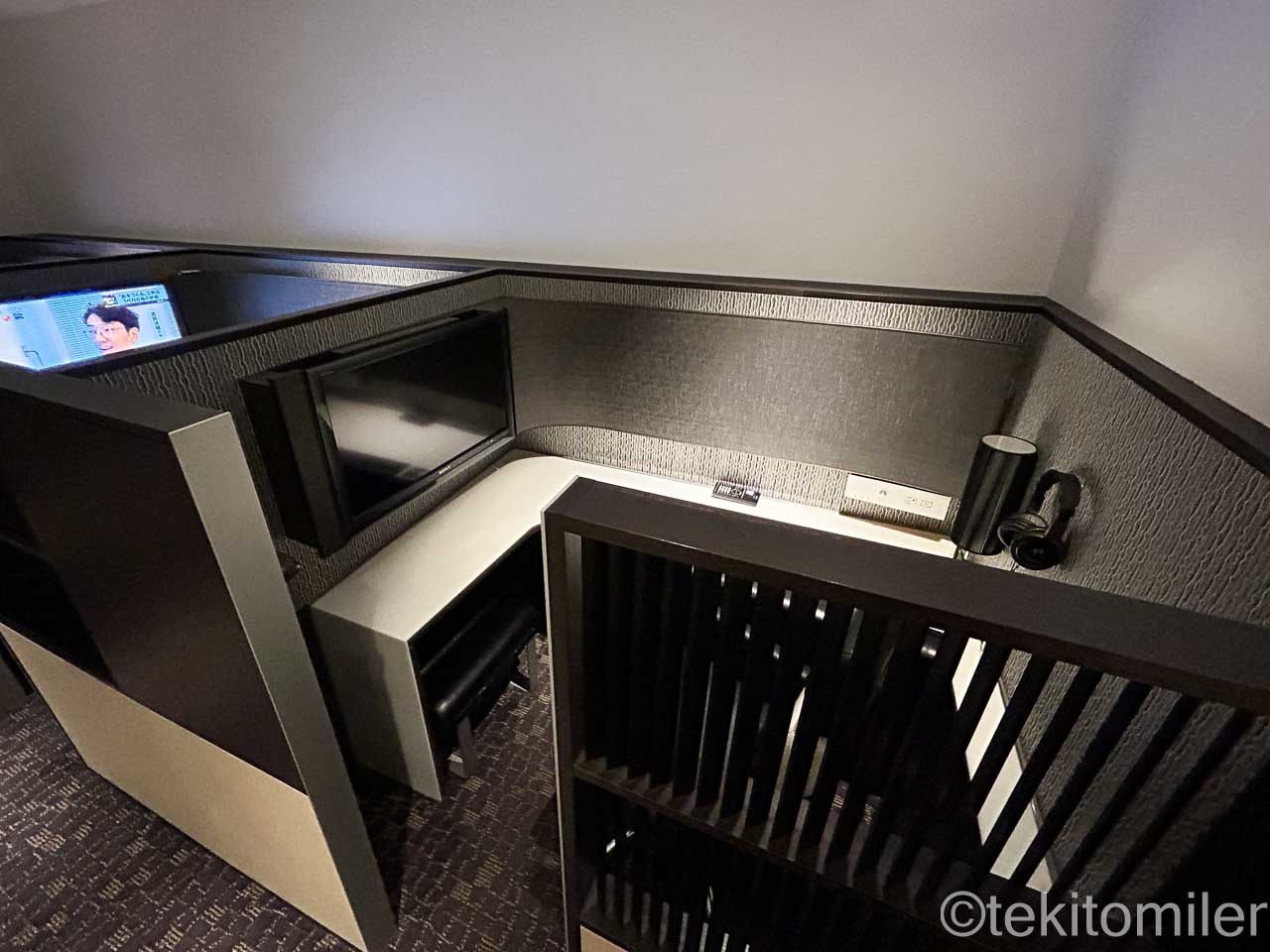 大画面テレビがある個室。扉は閉まらなく、パーティションも低いので、半個室という方が近いかもです。