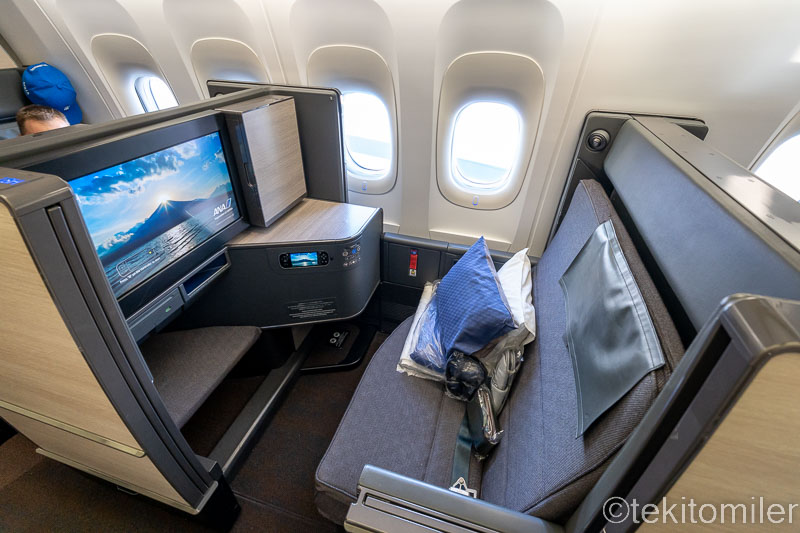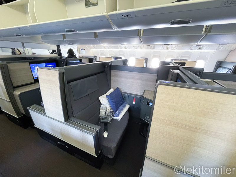 もはやファーストクラスと言っても良いレベルの完成度が高いシート。想像以上に快適で満足度が高いフライトでした。