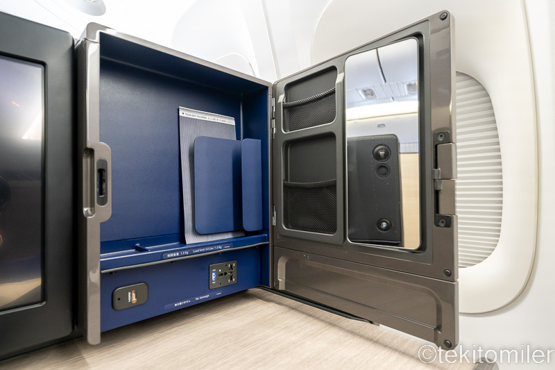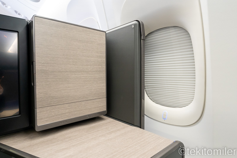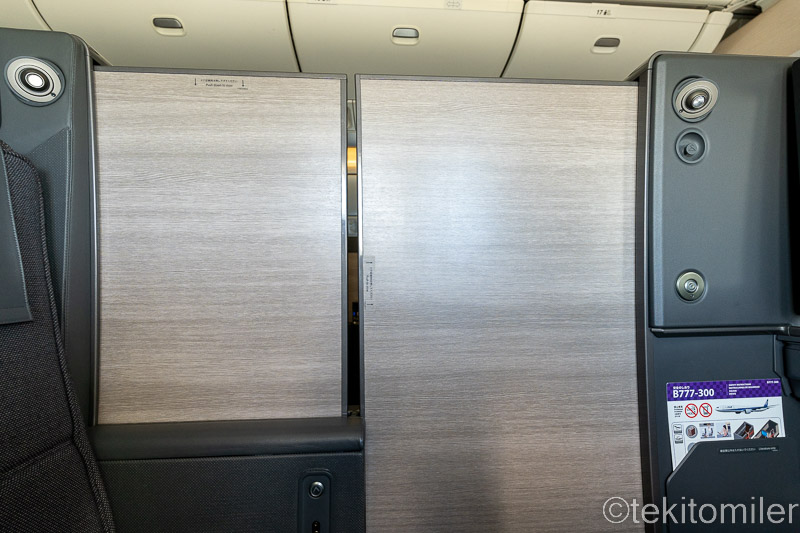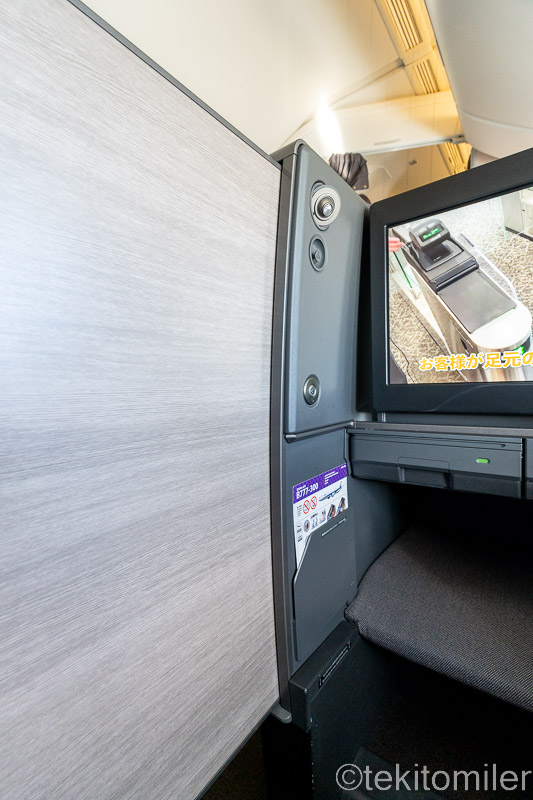 この状態でも個室感がありますね。座席後側のドアはフライト中はほとんど閉めた状態にしていました。