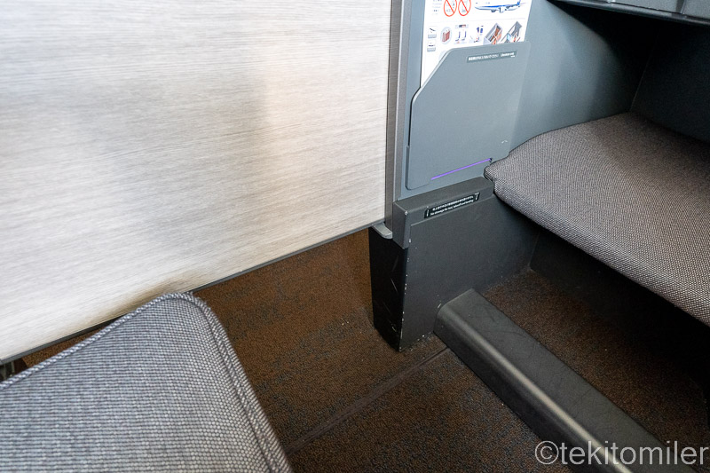 離陸前なのでTHE Roomのドアが開いていますが、その状態でも個室感の高いシートになっています。