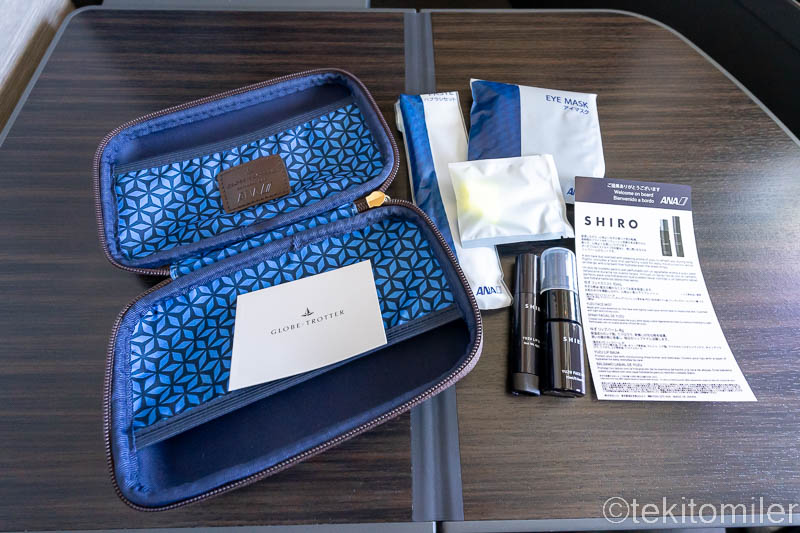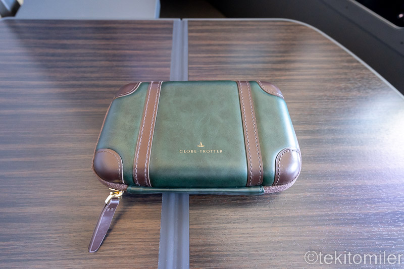 各シートにはアメニティーが用意されています。THE Room専用ではなく、長距離国際線で共通のアメニティーキットです。