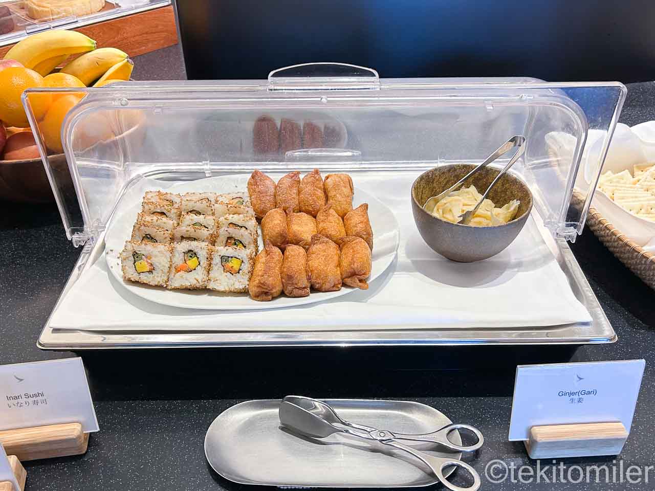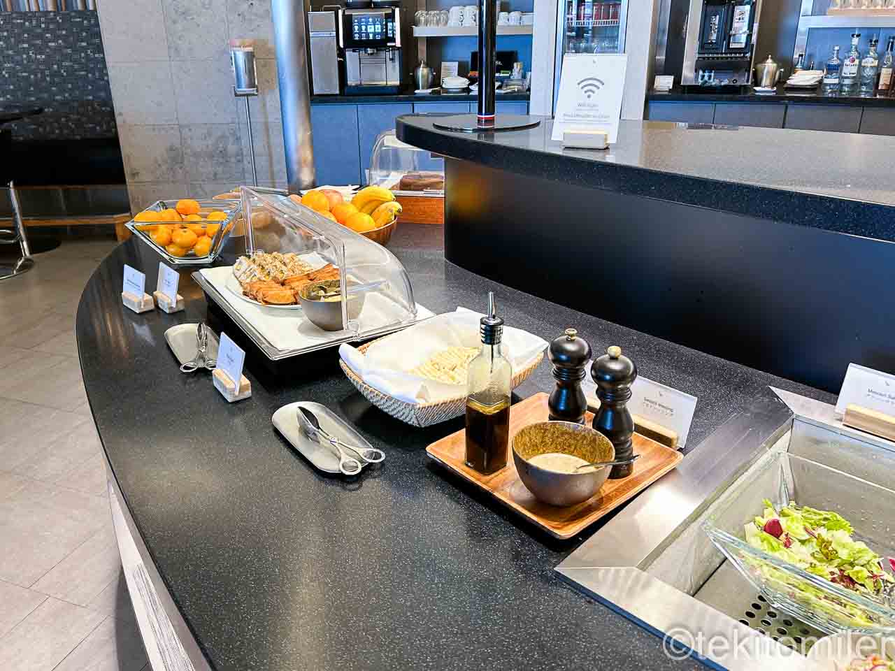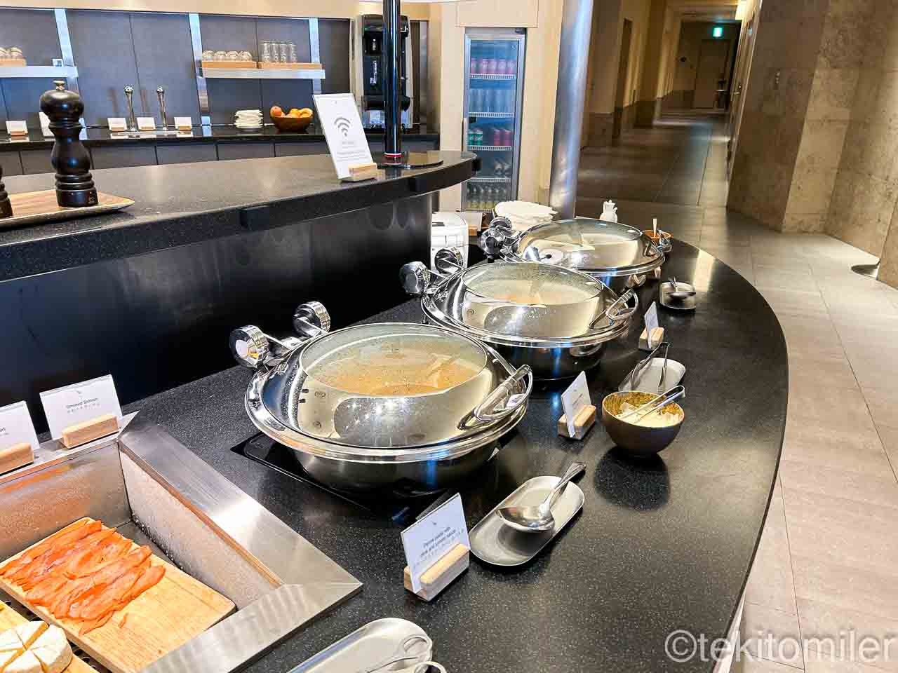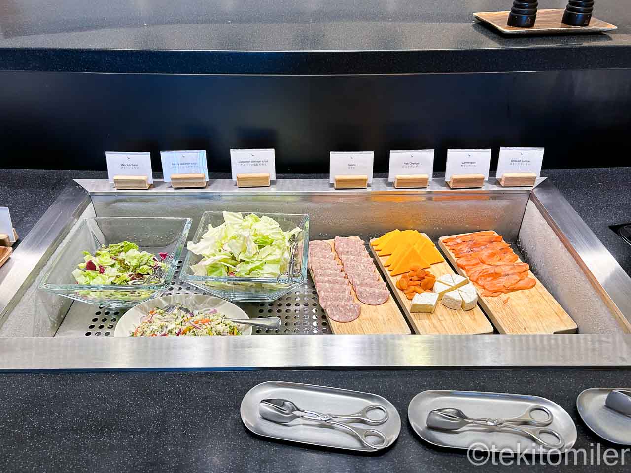 サクララウンジと比較すると、料理の種類は少なめですね。スタッフの方によると、時間帯によってメニューは変わるとのこと。