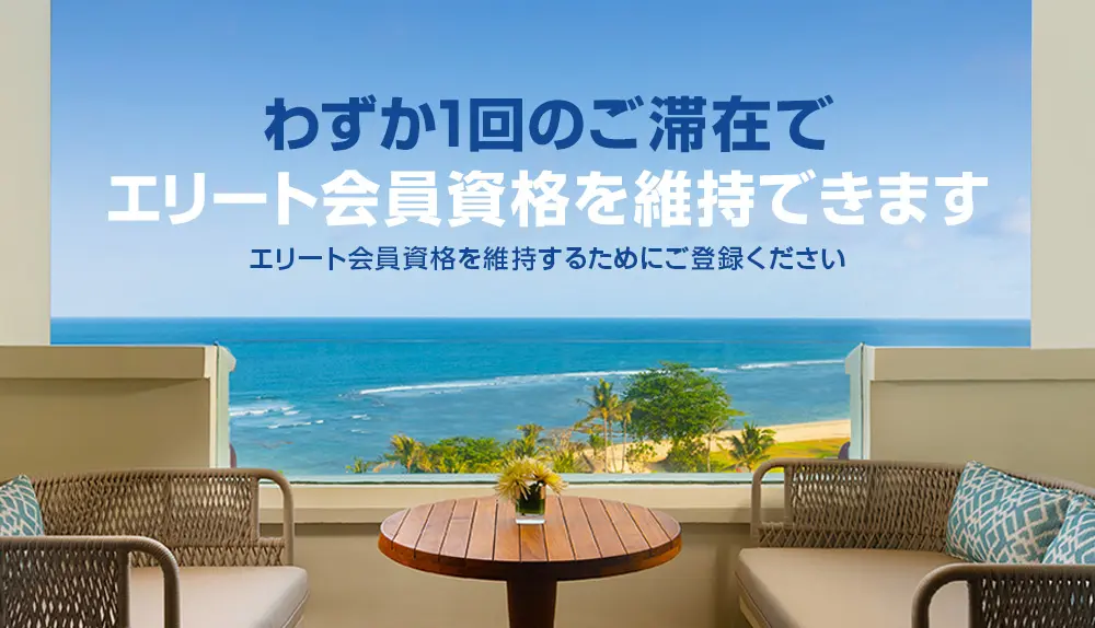 - 期間内に1回滞在すると、2024年3月31日までエリート会員資格を維持できる