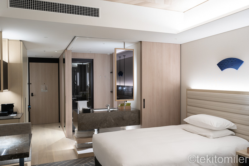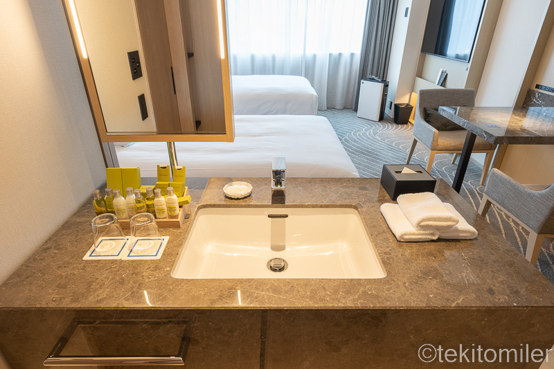 面積は31m2なのでめちゃくちゃ広い訳では無いですが、洗面台の仕切りが無く、客室と一体になっているので、とっても開放感があります。