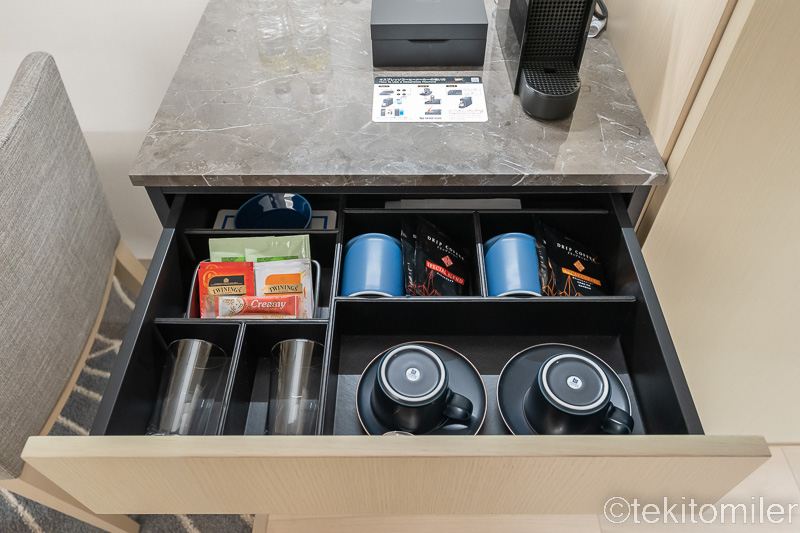 コーヒーマシンはネスプレッソで、こちらも無料です。