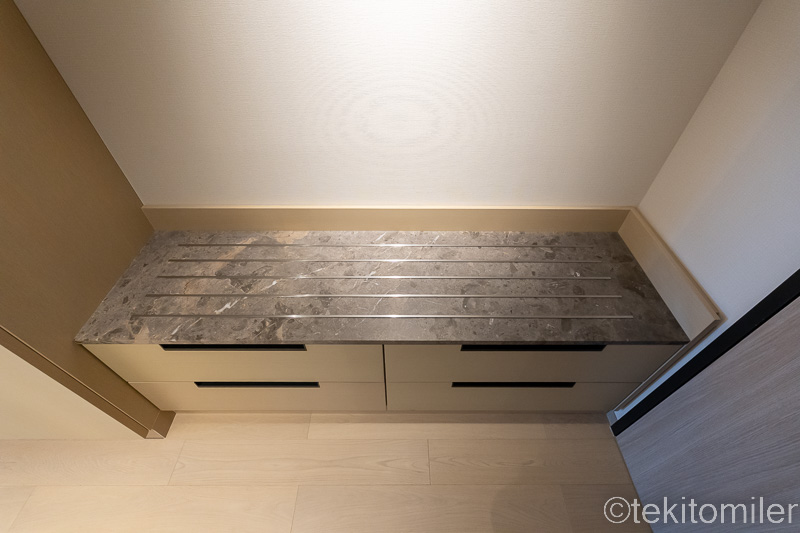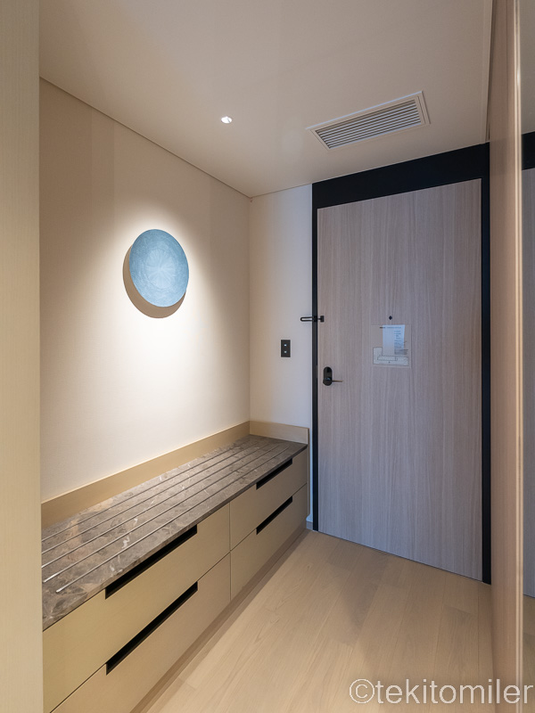客室に入ってすぐのところには、荷物を置くためのスペースがあります。