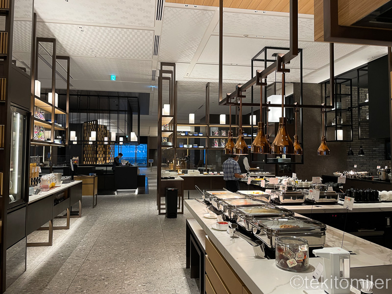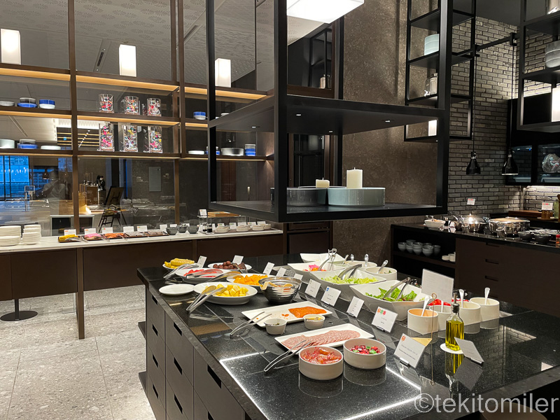 朝食はビュッフェ形式。ダイヤモンド会員専用のビュッフェ台はなく、共通のビュッフェカウンターから料理をチョイスします。