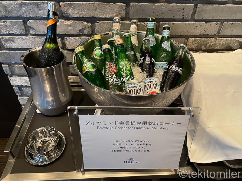ダイヤモンド会員専用のドリンクもあり。こちらではソフトドリンクに加えて、スパークリングワインも提供されています。