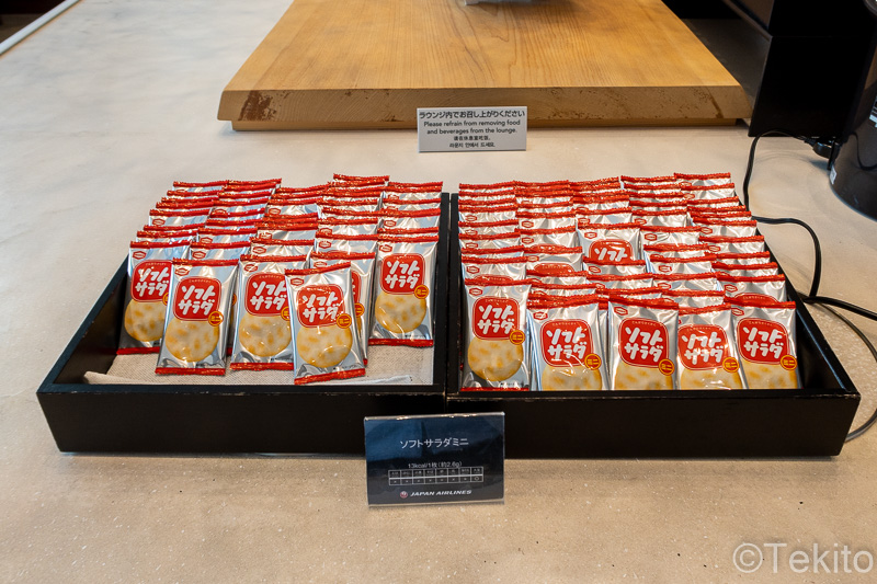 国内線最高峰のJALダイヤモンド・プレミアラウンジは、インテリアや雰囲気はサクララウンジと同じですが、軽食があるのが大きなメリット。