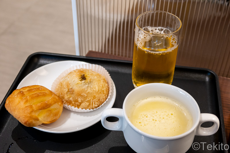 サクララウンジとの違いは、おにぎりやパンなどの軽食が提供されていること。メニューは空港ごとに異なっており、ご当地メニューが提供されていることもあります。