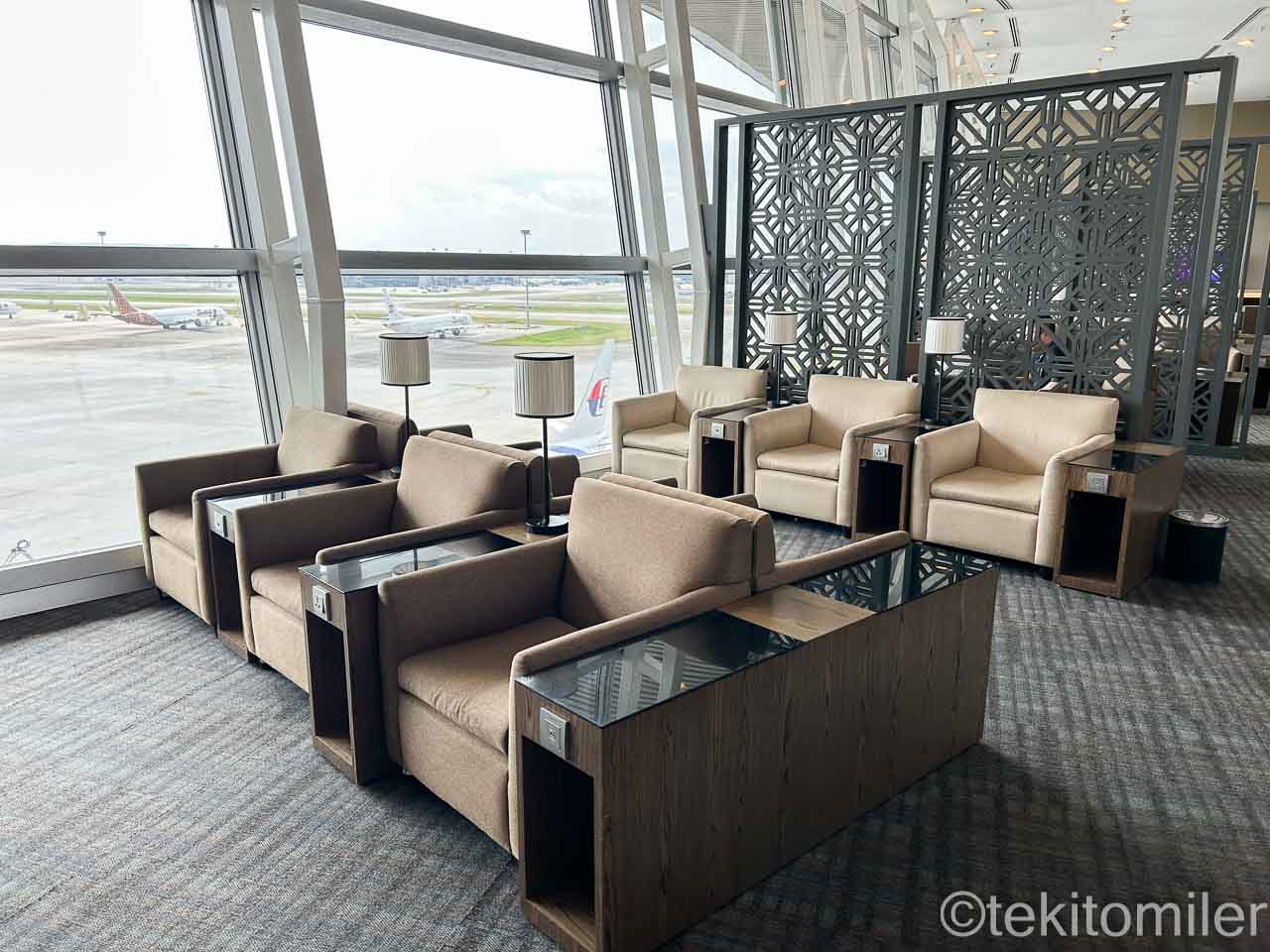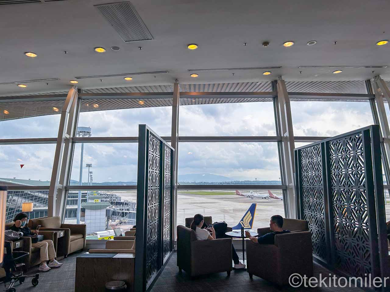 ターミナル側の天井付近にも窓があり、ラウンジ内は明るいです。