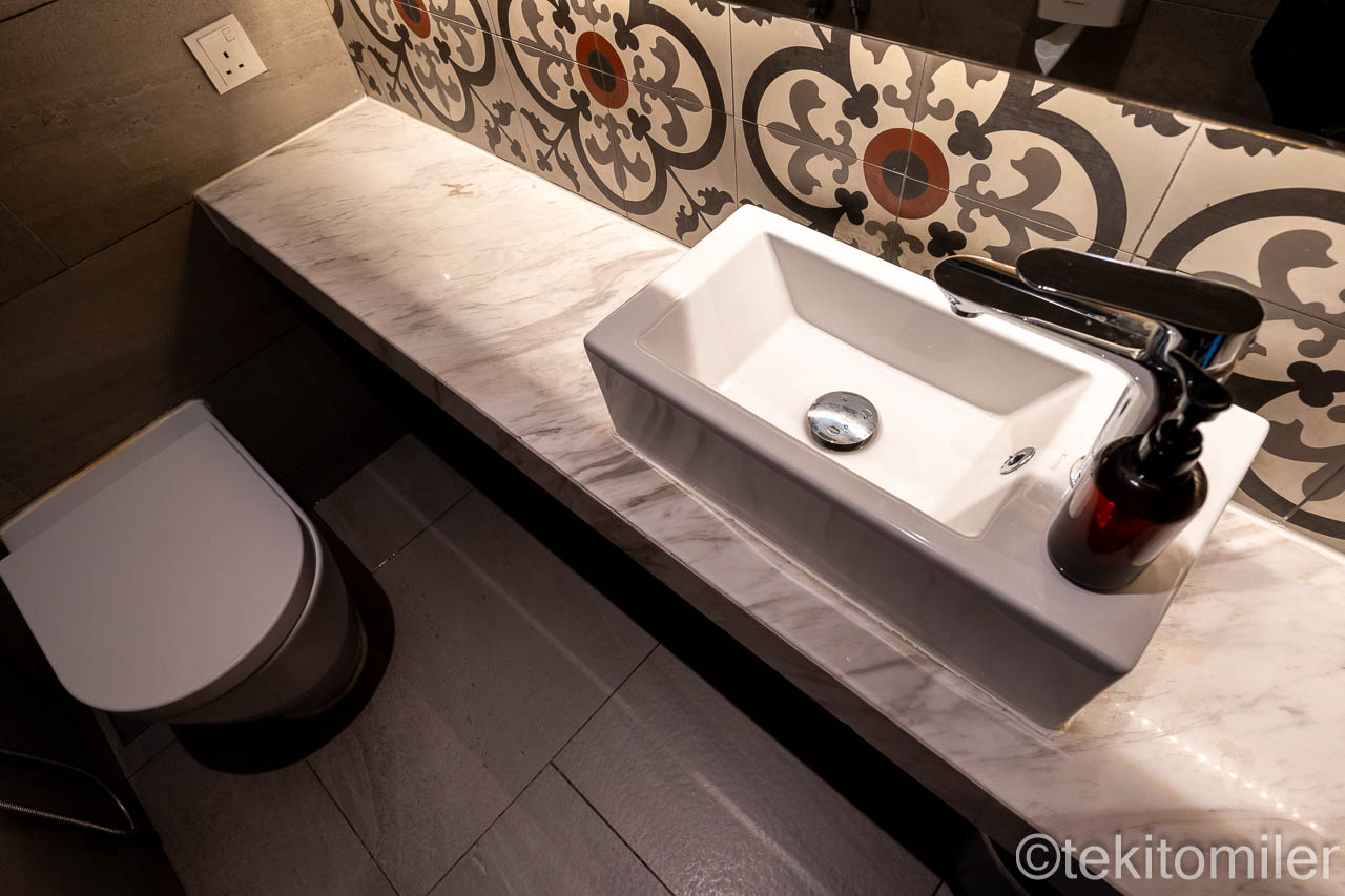 個室は広々しており、個室内には小さいながらも洗面台があります。