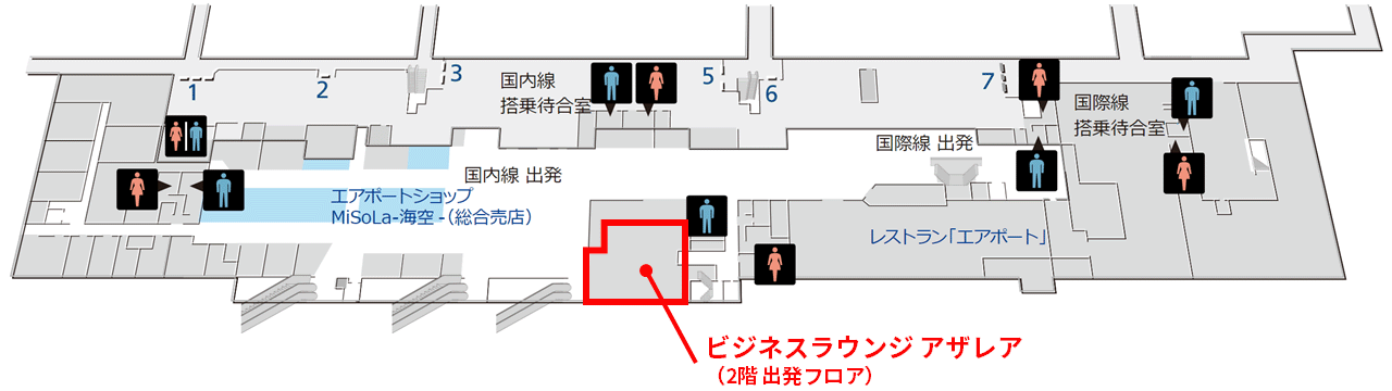ビジネスラウンジアザレアは、2階出発フロアにあります。