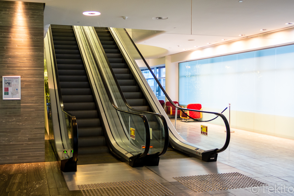ファーストクラスラウンジは3階にあるため、エスカレータで上がります。