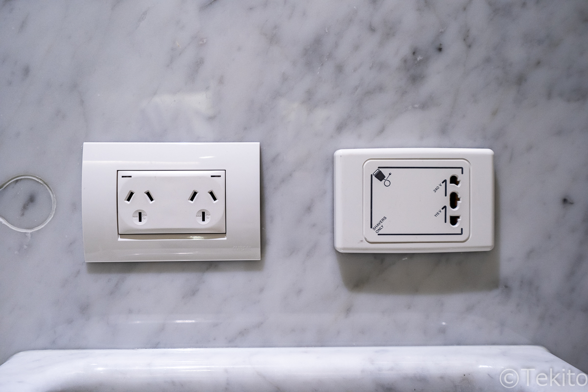 電源は各席にはありません。壁に電源が付いています。電源を利用するには、コンセントの変換アダプターが必要です。