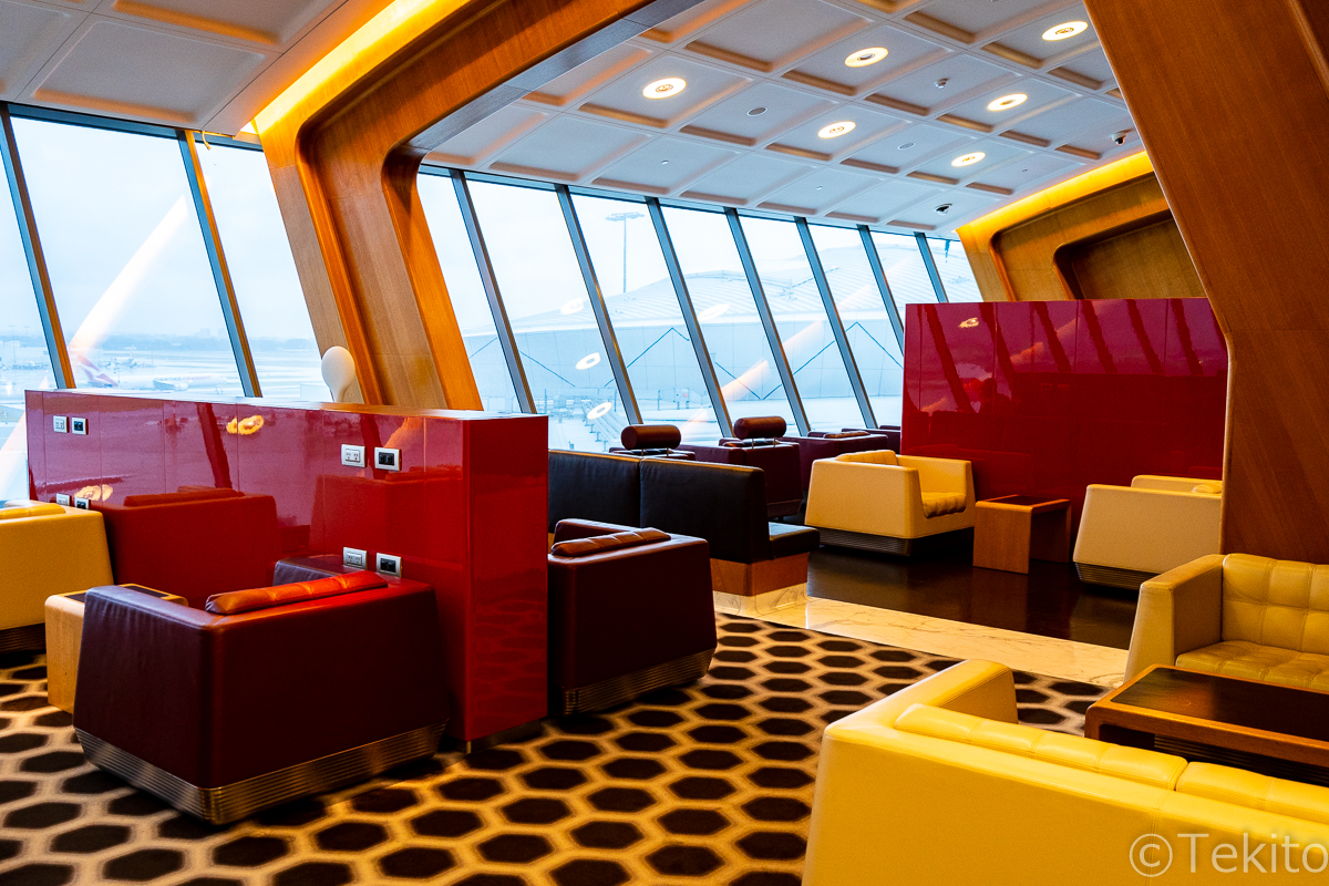 朝食時間帯なので、多くの人はダイニングエリアにいました。エメラルドやファーストクラス利用者は僅かで、ファーストクラスラウンジは空いていると思ってましたが、ダイニングエリアは賑わっていました。