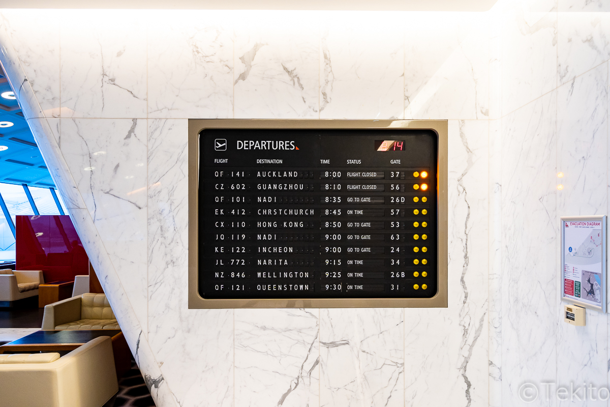 ラウンジ内のフライト情報は全てパタパタ式。今の時代にパタパタ式だと、逆にオシャレ。